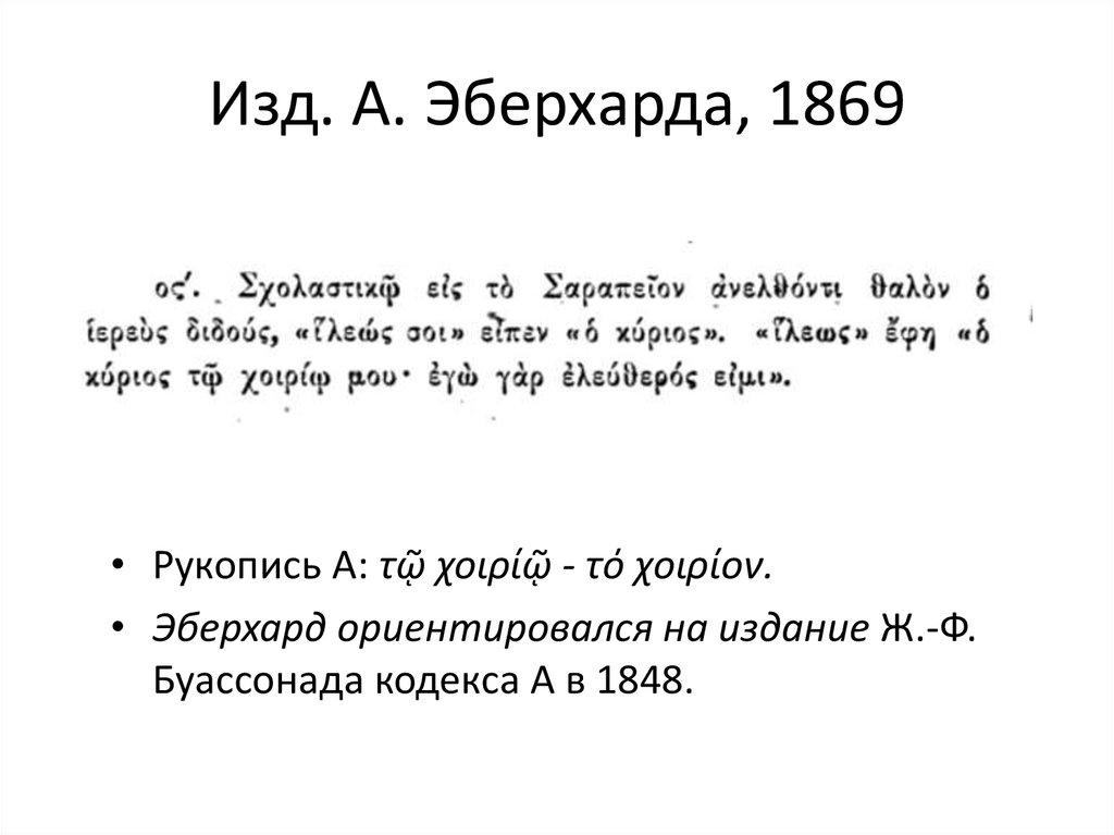 Изд. А. Эберхарда, 1869• Рукопись А: τῷ χοιρίῷ - τό χοιρίον.