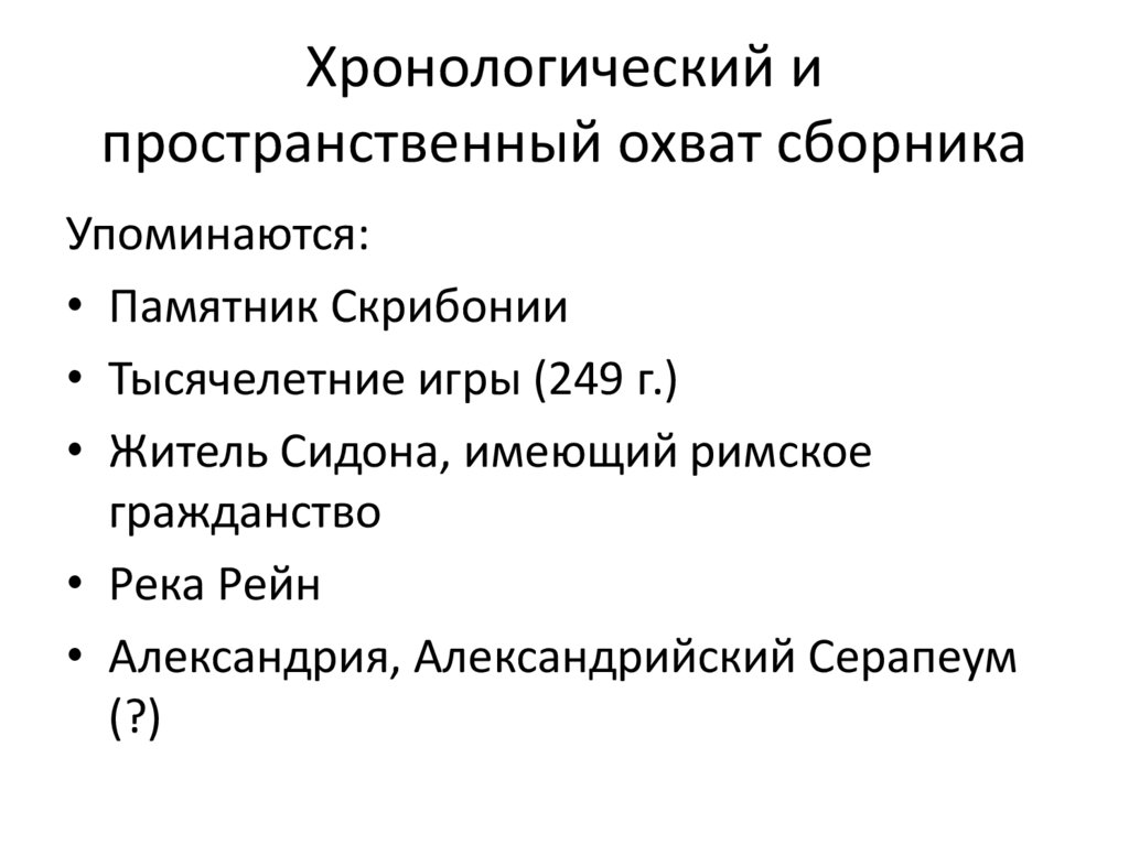 Хронологический ипространственный охват сборника