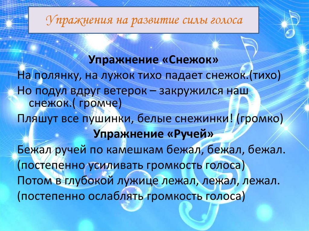 Упражнения на развитие силы голосаУпражнение «Снежок»