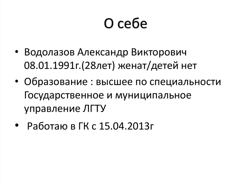 О себе• Водолазов Александр Викторович