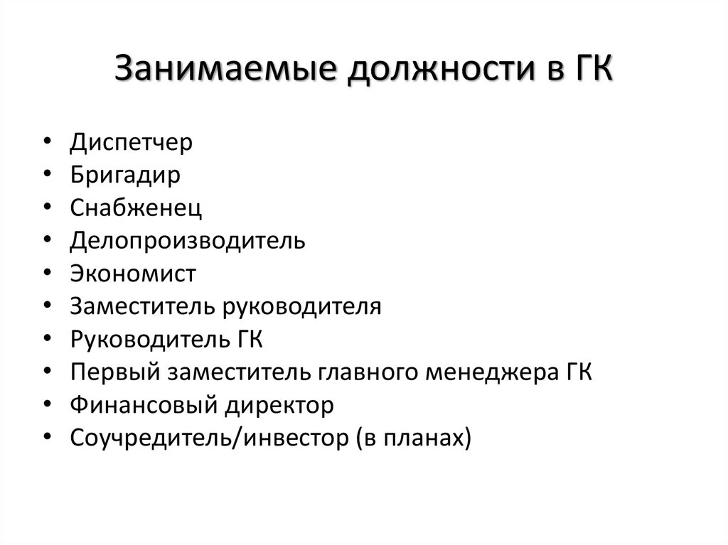 Занимаемые должности в ГК