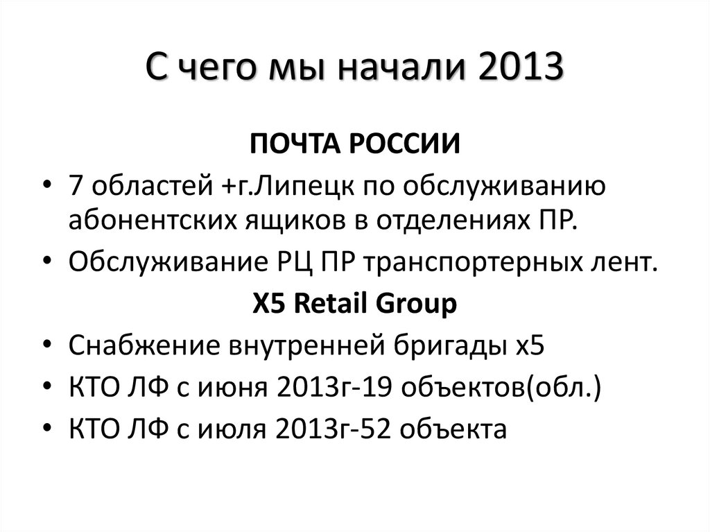 С чего мы начали 2013ПОЧТА РОССИИ