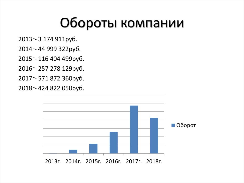 Обороты компании2013г- 3 174 911руб.