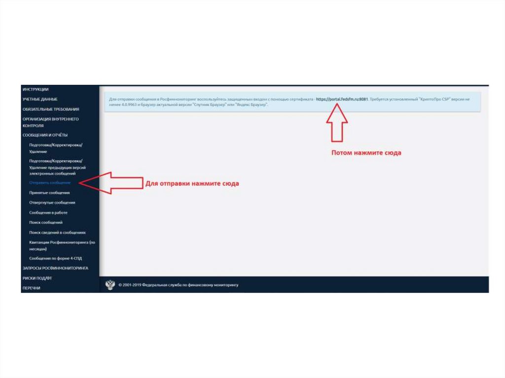 Выберите сохраненный с жесткого диска файл, загрузите его в кабинет, подпишите.Итогом отправки должно стать ПРИНЯТОЕ Росфинмониторингом сообщение.