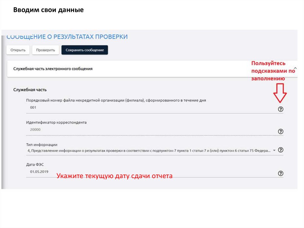 Вводим свои данныеУкажите текущую дату сдачи отчета