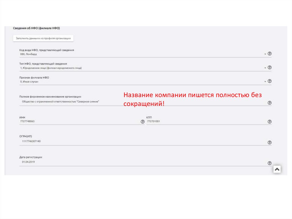 Название компании пишется полностью без сокращений!Адрес пишется в специальном формате. Например: