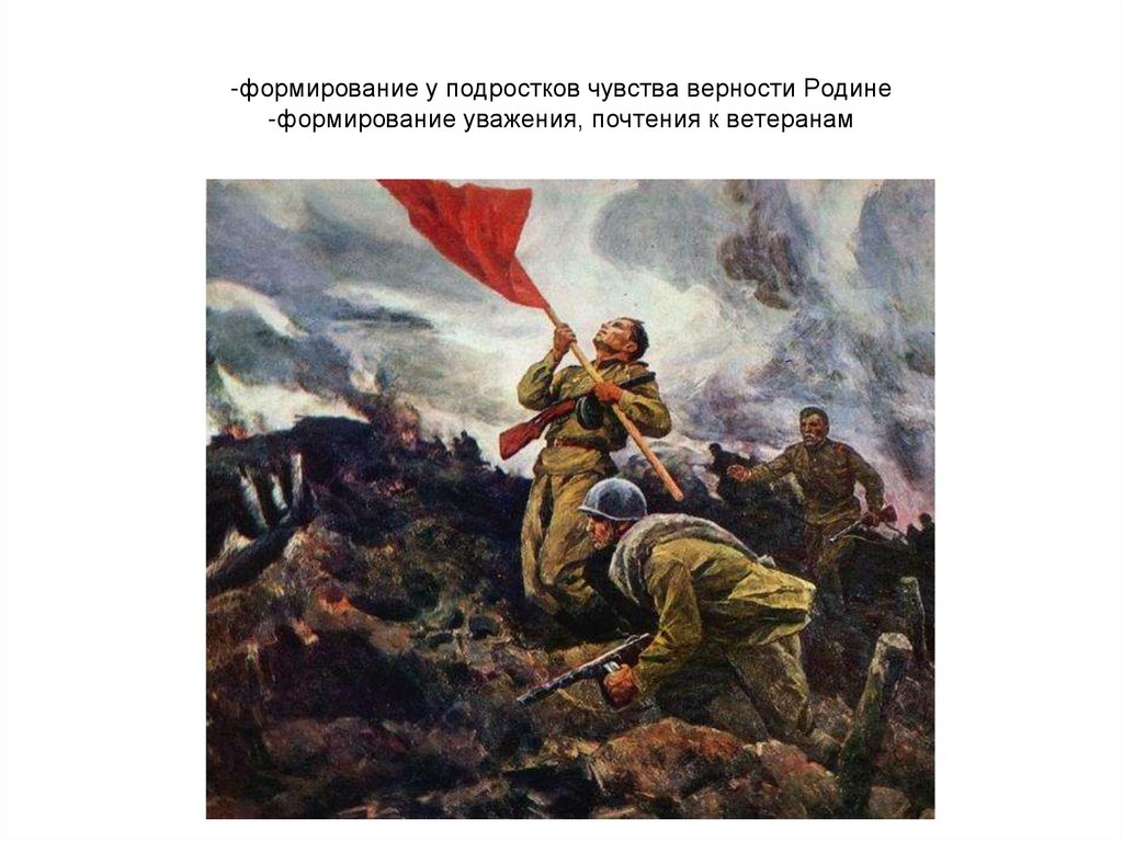 -формирование у подростков чувства верности Родине-формирование уважения, почтения к ветеранам