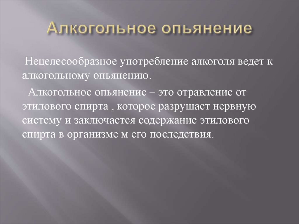 Нецелесообразное употребление алкоголя ведет калкогольному опьянению.
