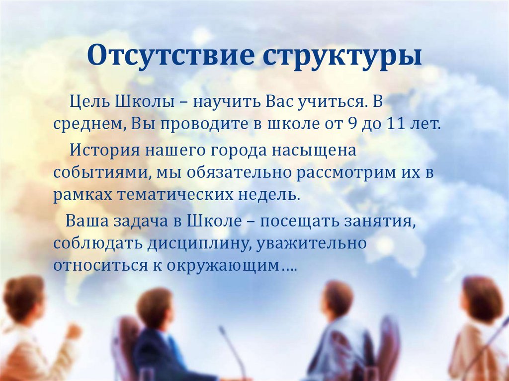 Отсутствие структурыЦель Школы – научить Вас учиться. В