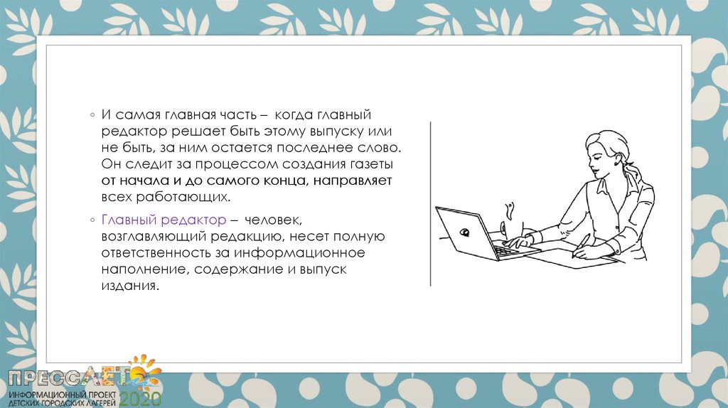 ◦ И самая главная часть – когда главныйредактор решает быть этому выпуску или