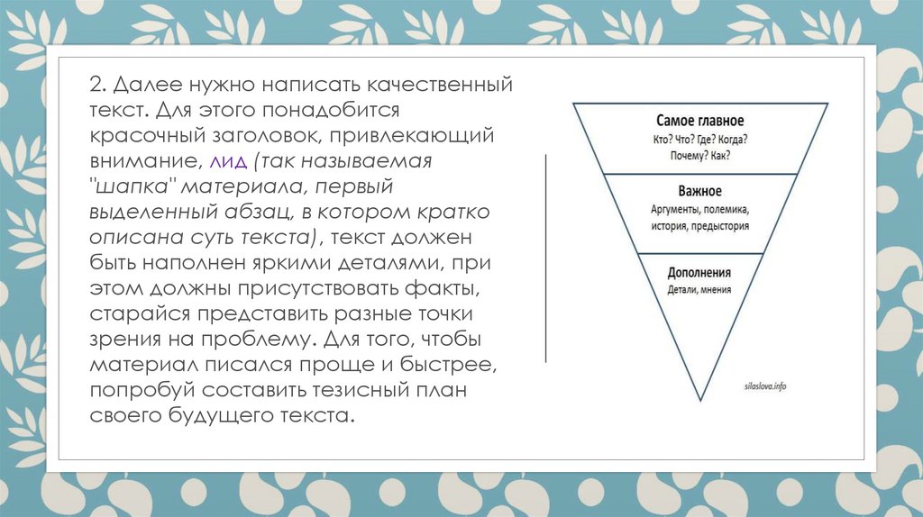 2. Далее нужно написать качественныйтекст. Для этого понадобится