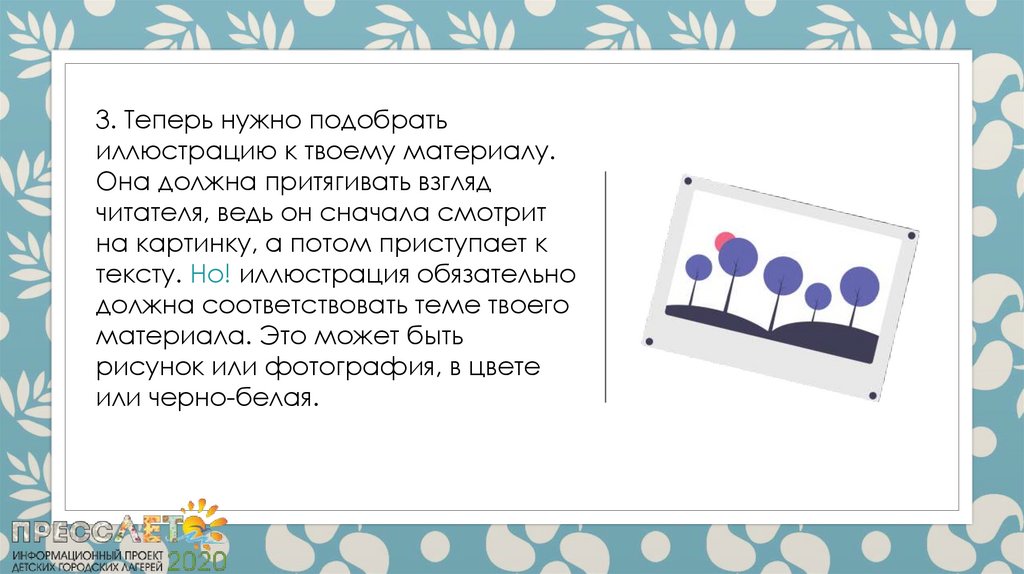 3. Теперь нужно подобратьиллюстрацию к твоему материалу.