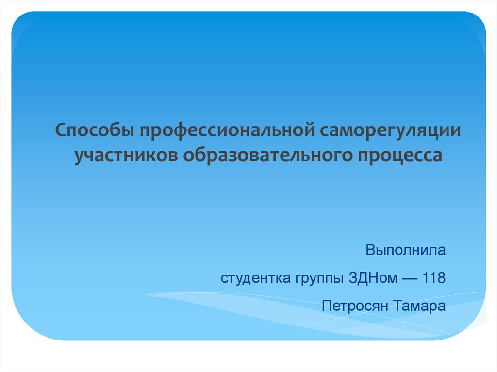 Способы профессиональной саморегуляцииучастников образовательного процесса