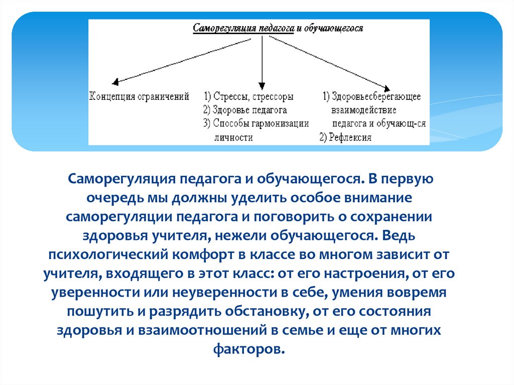 Саморегуляция педагога и обучающегося. В первуюочередь мы должны уделить особое внимание