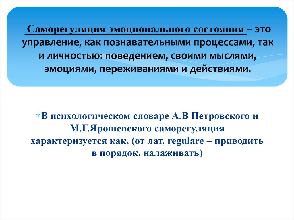 Саморегуляция эмоционального состояния – этоуправление, как познавательными процессами, так