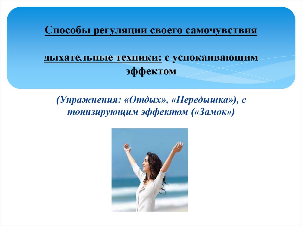 Способы регуляции своего самочувствиядыхательные техники: с успокаивающим