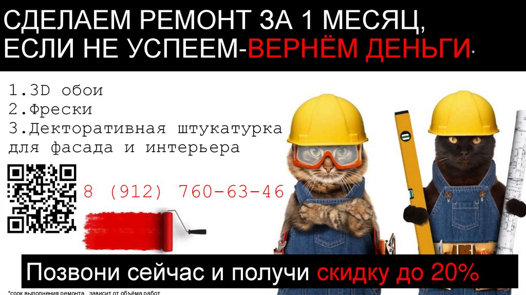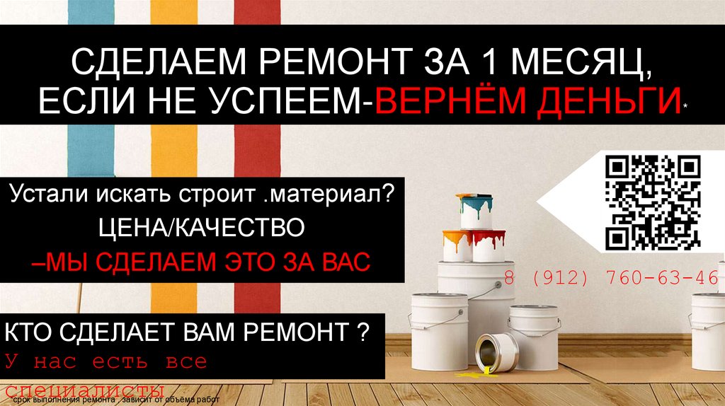 Сделаем ремонт за 1 месяц, если не успеем-вернём деньги