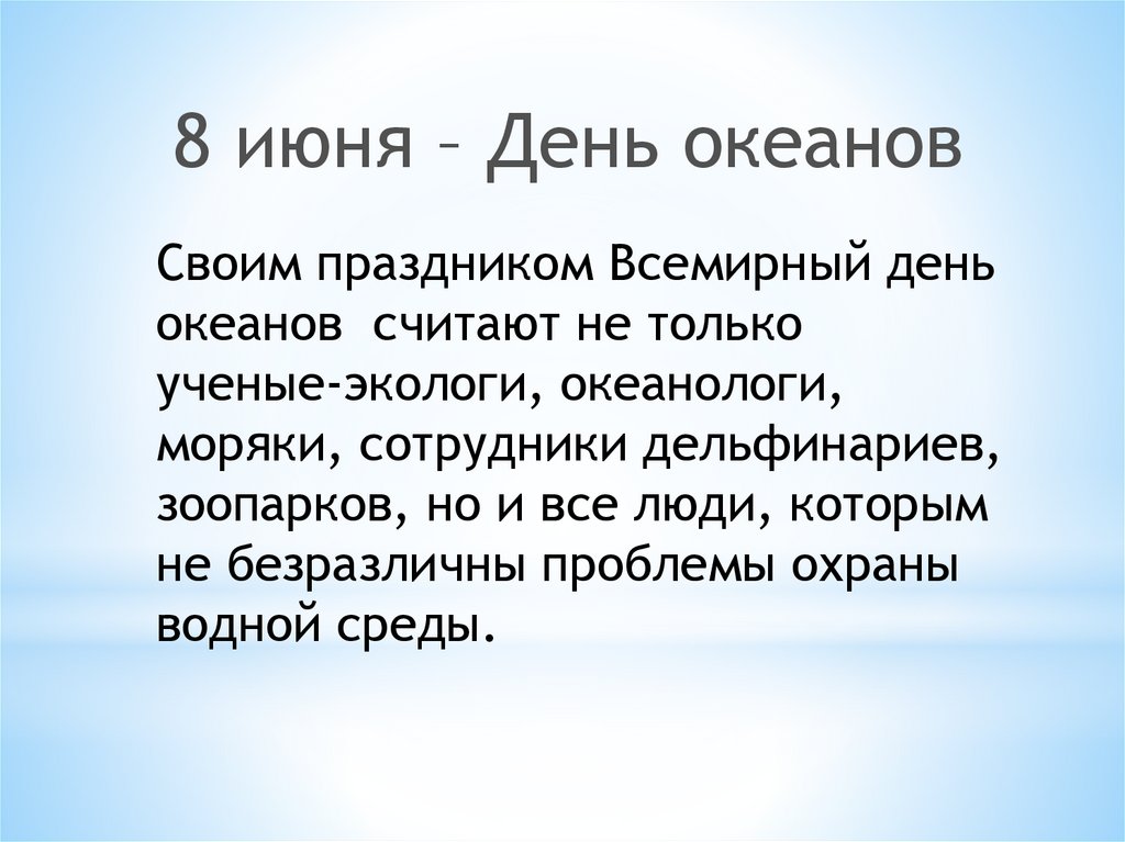 8 июня – День океановСвоим праздником Всемирный день