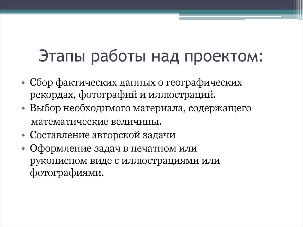 Этапы работы над проектом:• Сбор фактических данных о географических