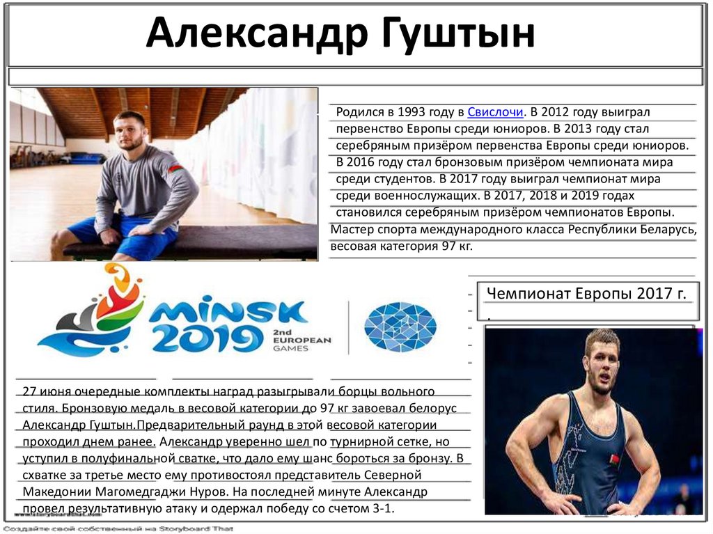 Александр ГуштынРодился в 1993 году в Свислочи. В 2012 году выиграл