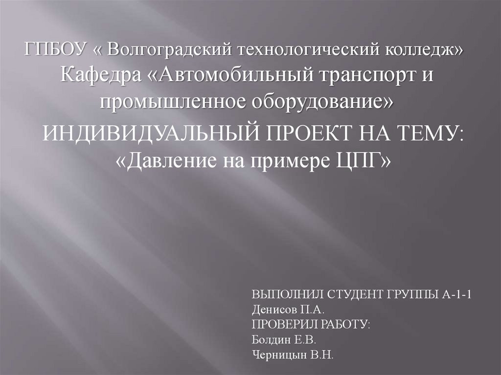 ГПБОУ « Волгоградский технологический колледж»Кафедра «Автомобильный транспорт и