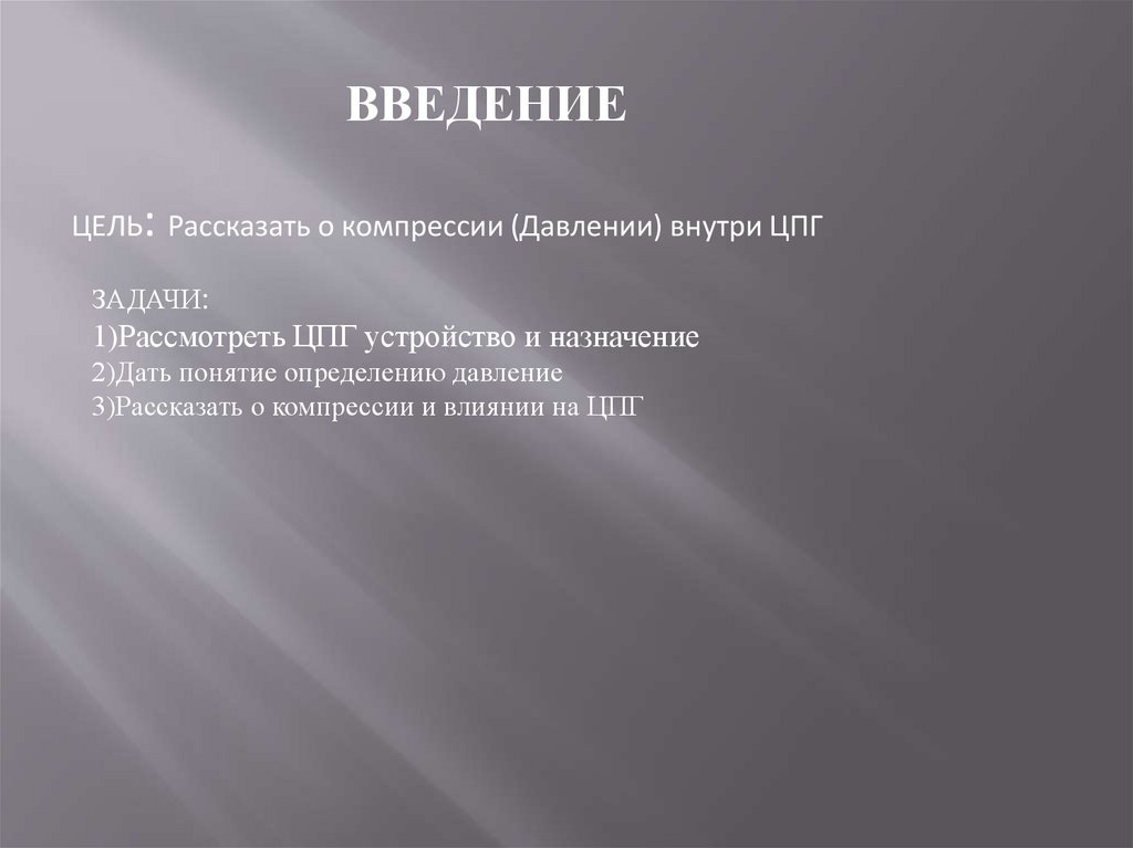 ВВЕДЕНИЕЦЕЛЬ: Рассказать о компрессии (Давлении) внутри ЦПГ