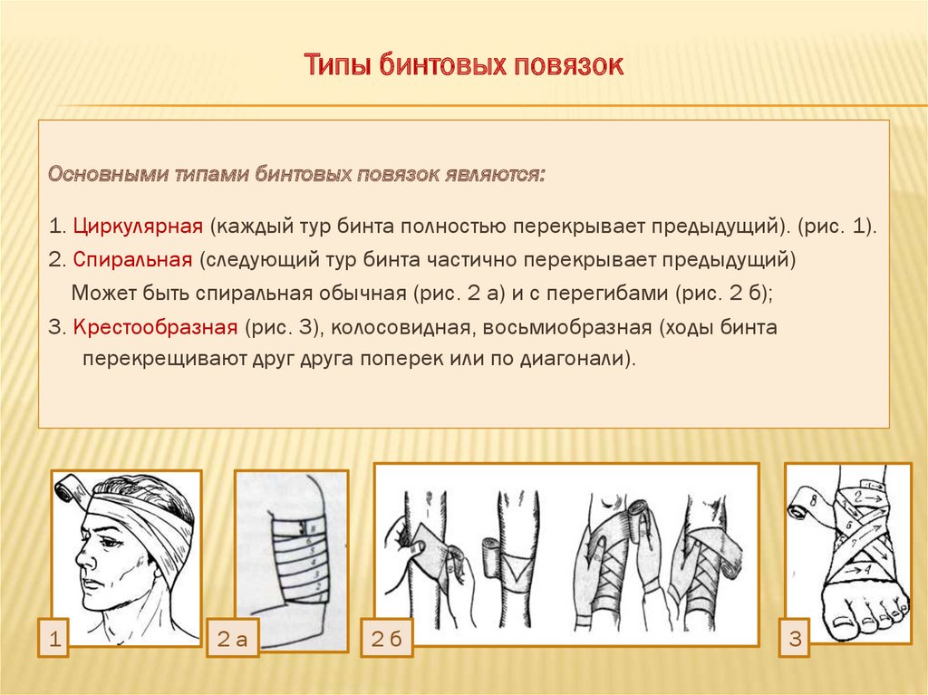 Типы бинтовых повязокОсновными типами бинтовых повязок являются: