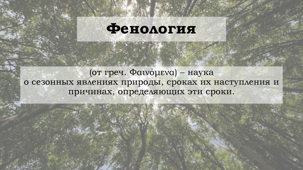 Фенология (от греч. Φαινόμενα) – наука о сезонных явлениях природы, сроках их наступления