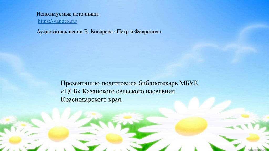 Аудиозапись песни В. Косарева «Пётр и Феврония»