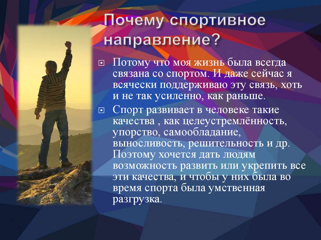Потому что моя жизнь была всегдасвязана со спортом. И даже сейчас я