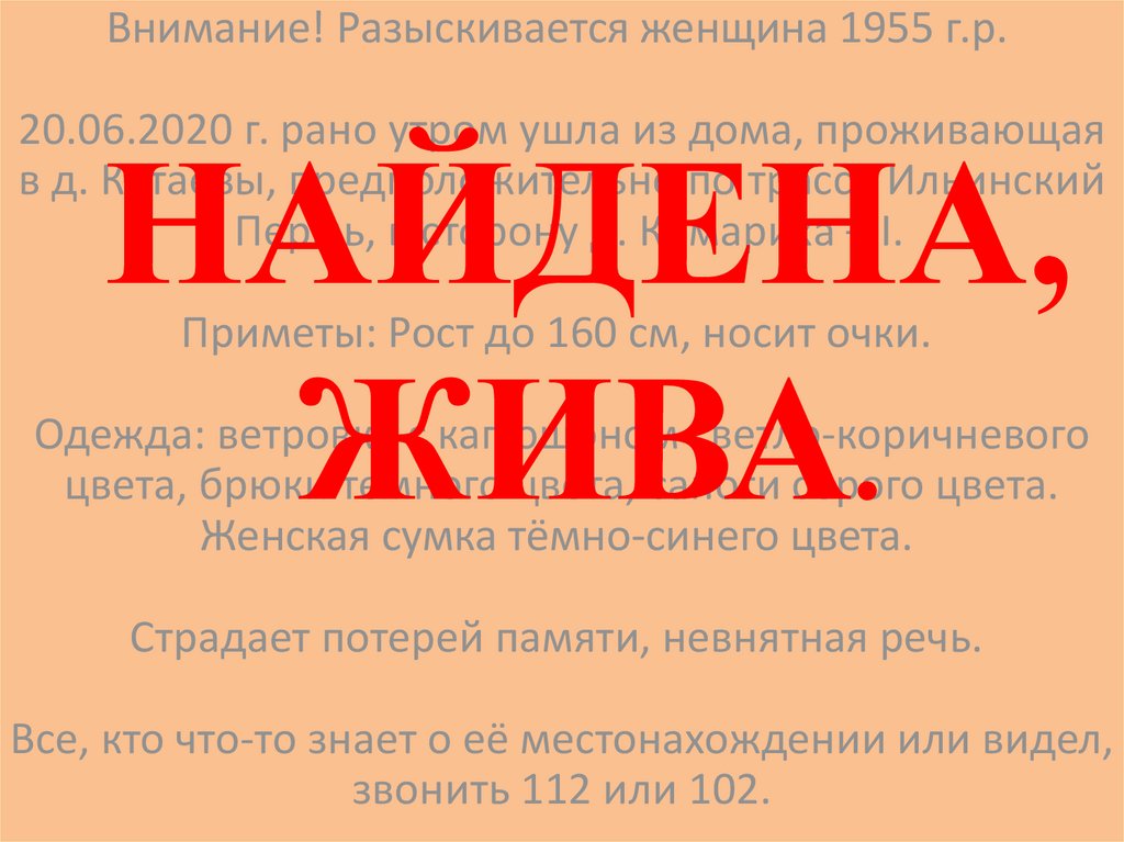 Внимание! Разыскивается женщина 1955 г.р.20.06.2020 г. рано утром ушла из дома, проживающая