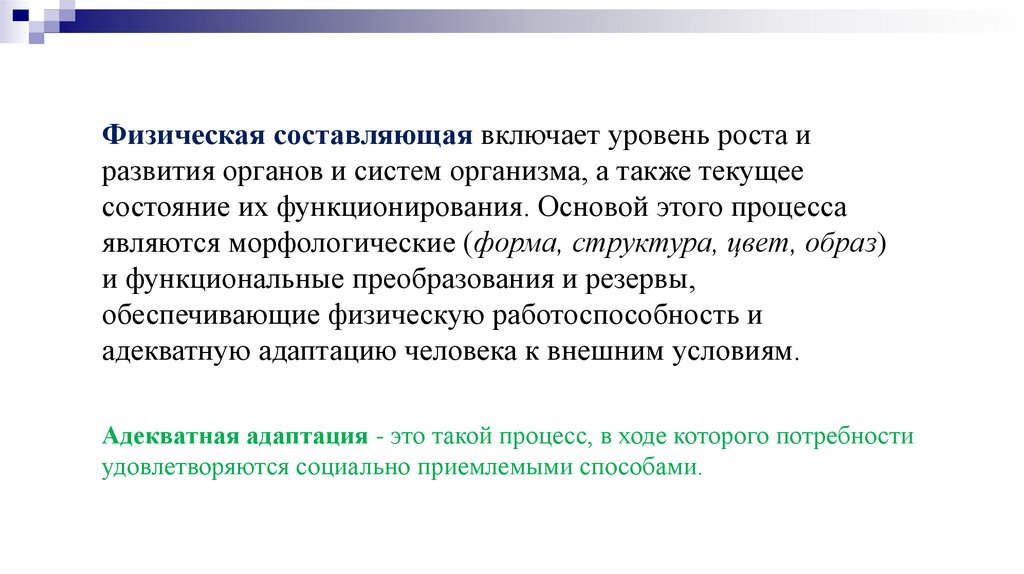 Физическая составляющая включает уровень роста иразвития органов и систем организма, а также текущее
