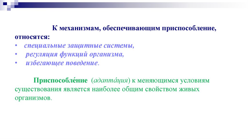 К механизмам, обеспечивающим приспособление,относятся:
