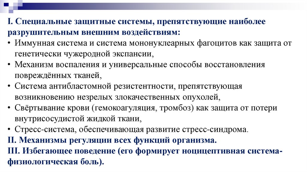 I. Специальные защитные системы, препятствующие наиболееразрушительным внешним воздействиям: