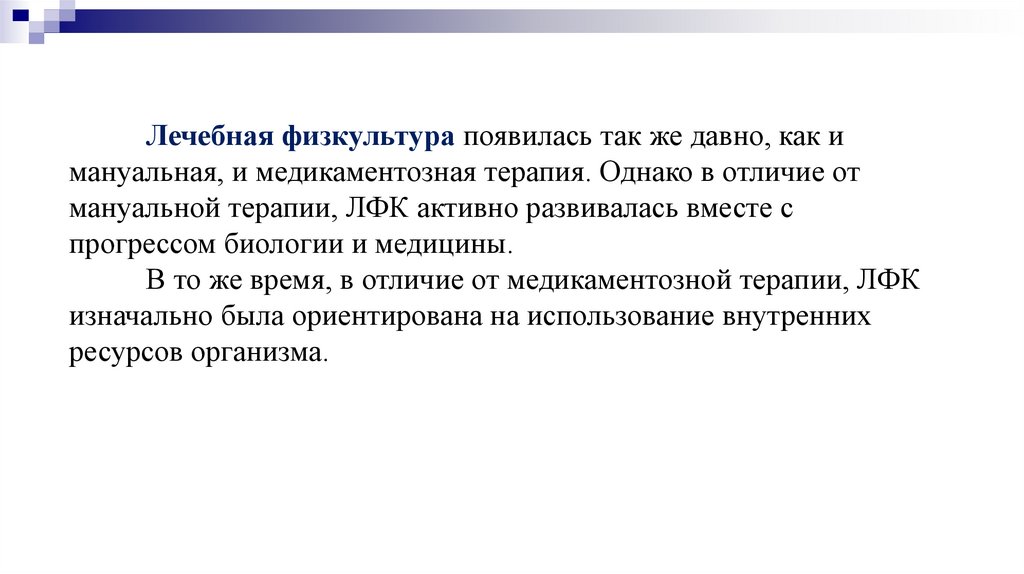 Лечебная физкультура появилась так же давно, как имануальная, и медикаментозная терапия. Однако в отличие от