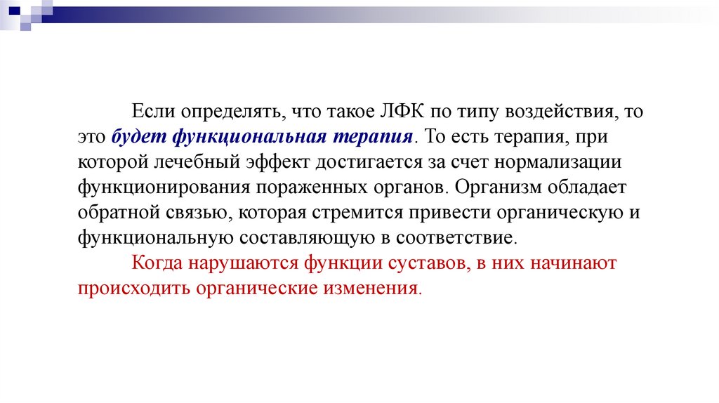 Если определять, что такое ЛФК по типу воздействия, тоэто будет функциональная терапия. То есть терапия, при