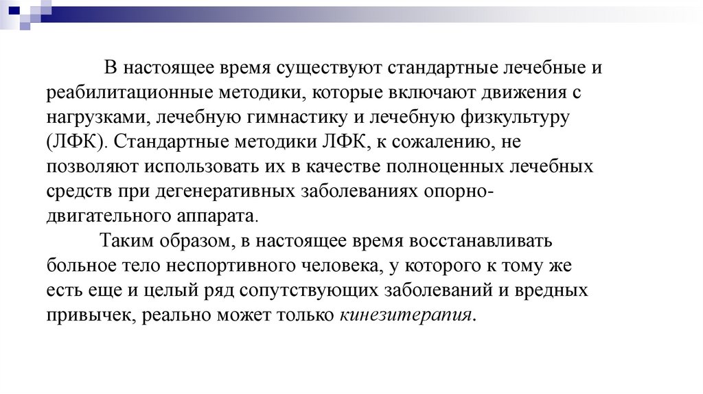 (ЛФК). Стандартные методики ЛФК, к сожалению, не