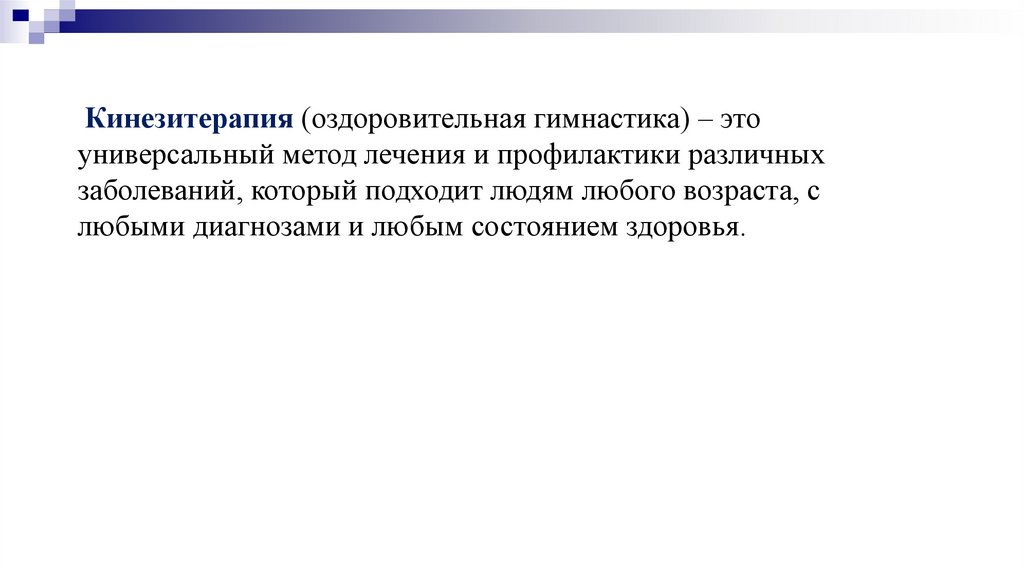 Кинезитерапия (оздоровительная гимнастика) – этоуниверсальный метод лечения и профилактики различных