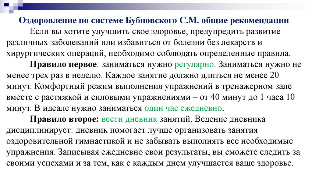 Оздоровление по системе Бубновского С.М. общие рекомендацииЕсли вы хотите улучшить свое здоровье, предупредить развитие