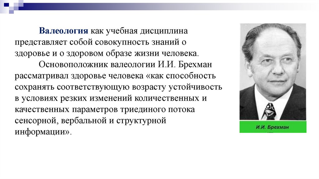 Основоположник валеологии И.И. Брехман