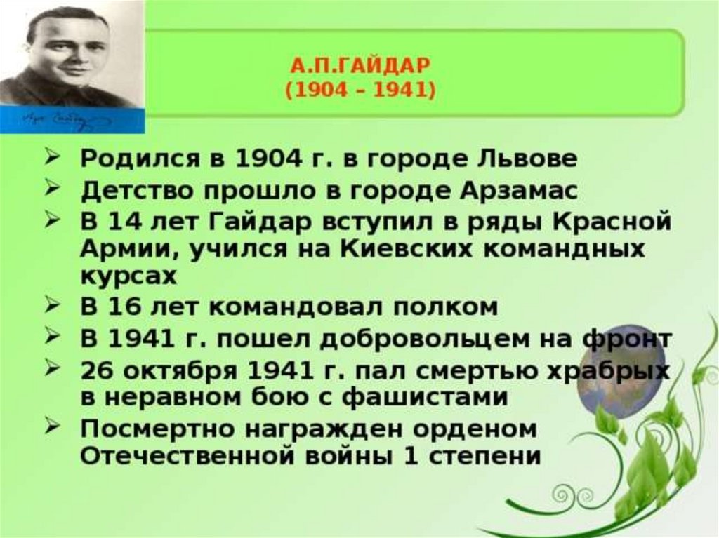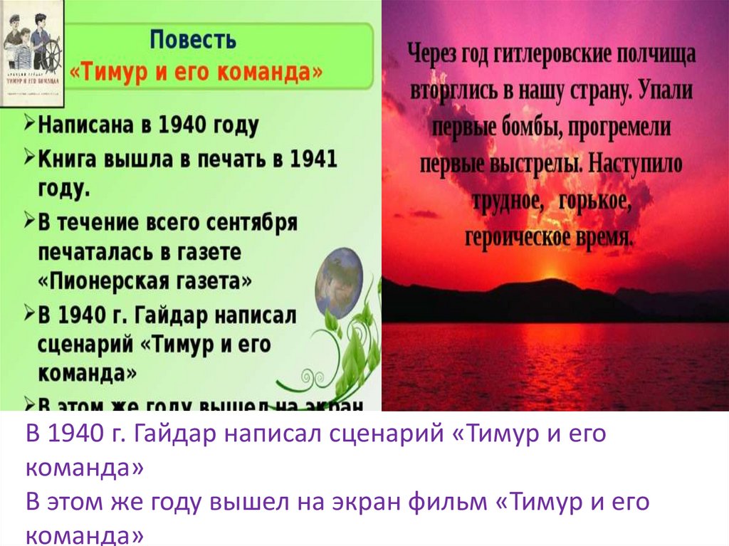 В 1940 г. Гайдар написал сценарий «Тимур и егокоманда»