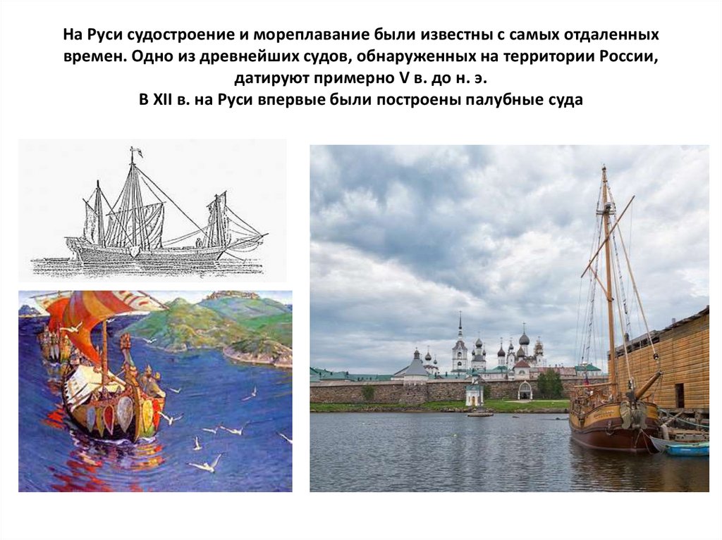 На Руси судостроение и мореплавание были известны с самых отдаленныхвремен. Одно из древнейших судов, обнаруженных на территории России,