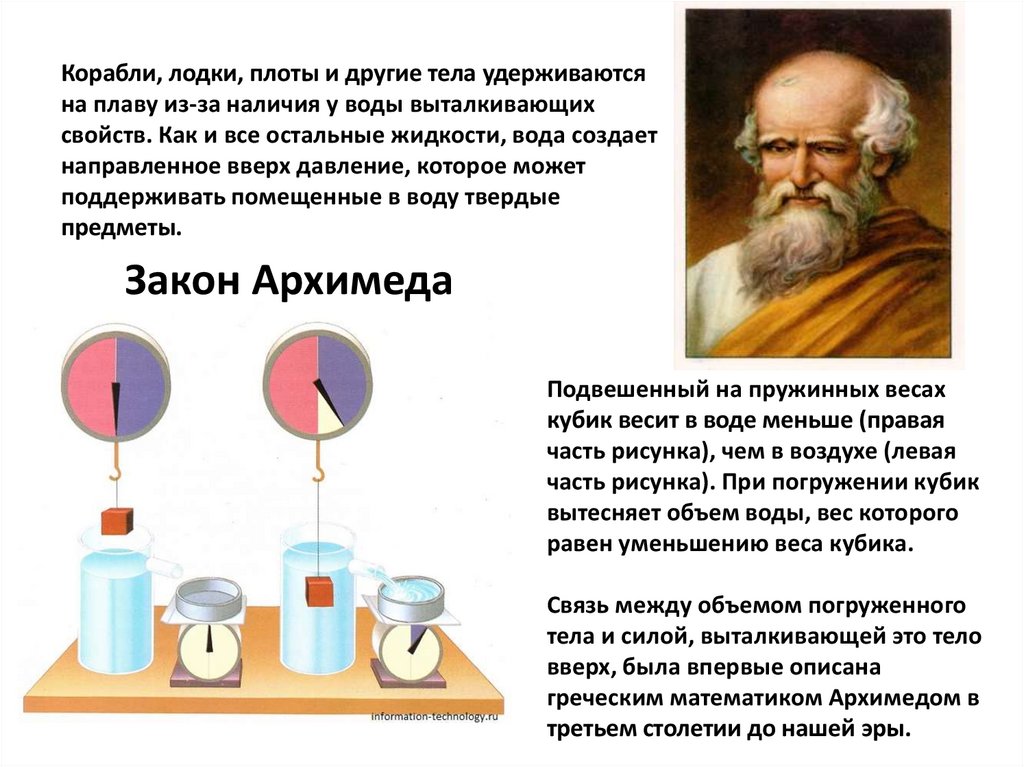 Корабли, лодки, плоты и другие тела удерживаютсяна плаву из-за наличия у воды выталкивающих