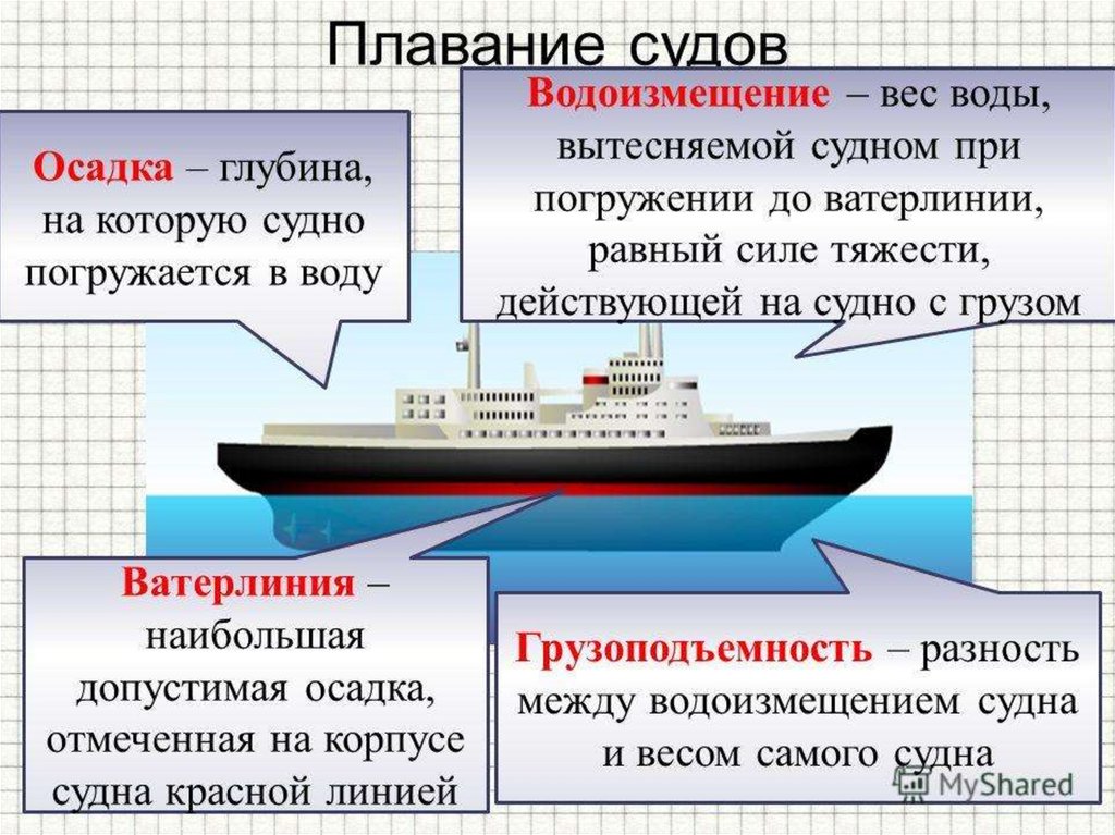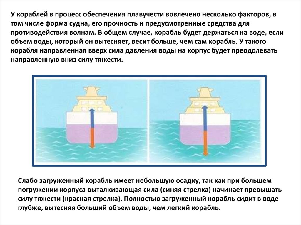 корабля направленная вверх сила давления воды на корпус будет преодолевать