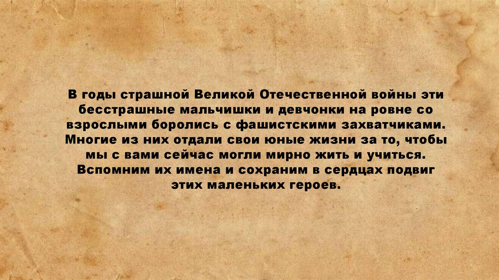 В годы страшной Великой Отечественной войны этибесстрашные мальчишки и девчонки на ровне со