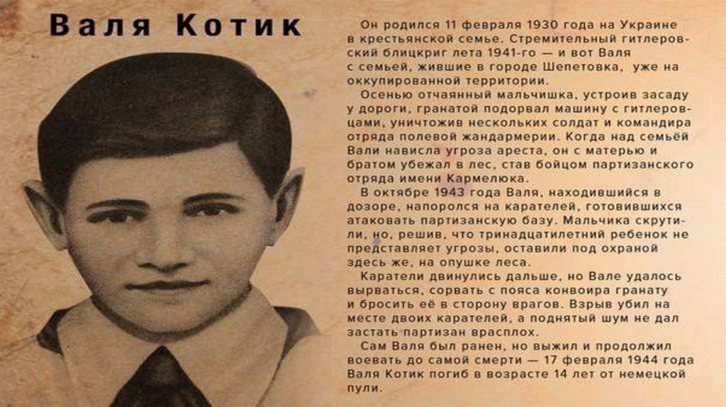 Дети – герои Великой отечественной войны. Историческая страница