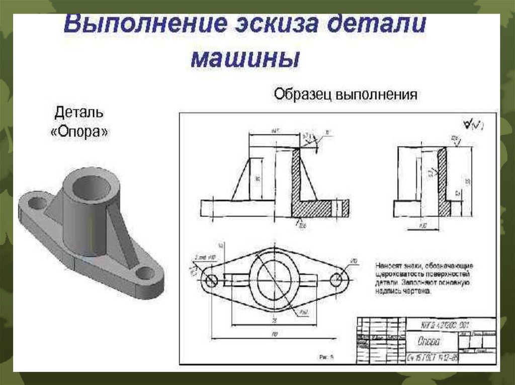 Построить изометрический чертеж детали «Опора» по эскизу в масштабе 1:1