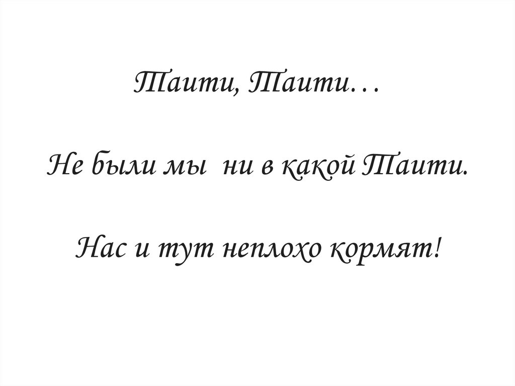 Таити, Таити…Не были мы ни в какой Таити.