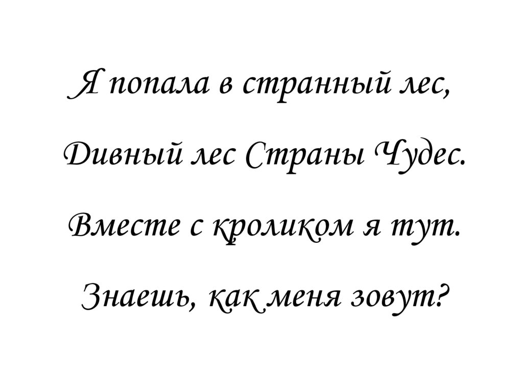 Я попала в странный лес,Дивный лес Страны Чудес.