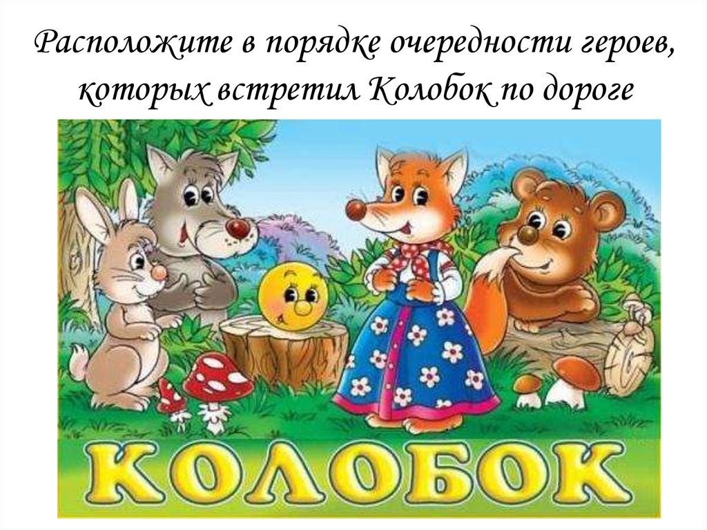 Расположите в порядке очередности героев,которых встретил Колобок по дороге